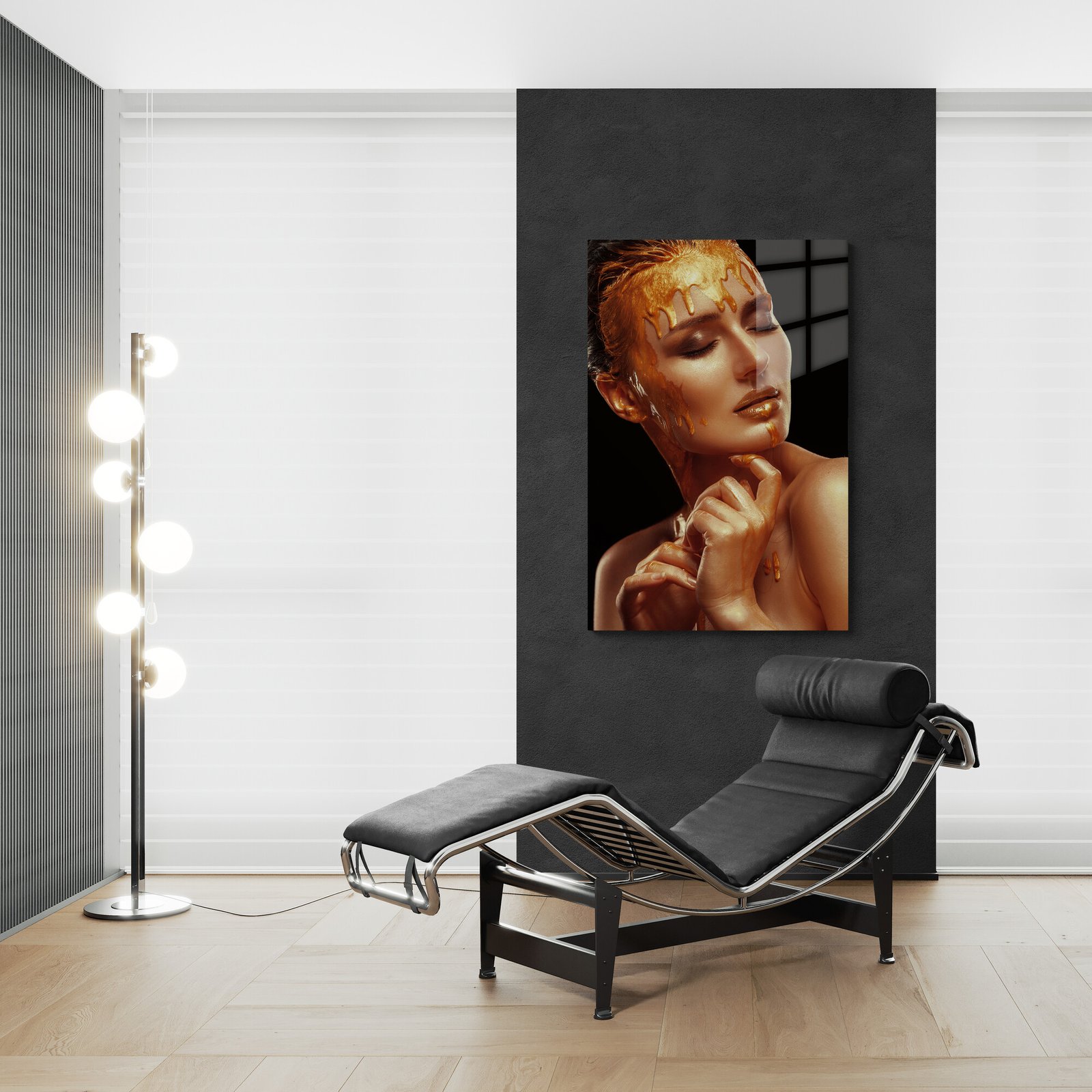 Aukščiausios kokybės sublimacinė spauda ant aliuminio, išsiskirianti HD ULTRA raiška ir „Retina“ lygio detalumu. Šis paveikslas perteikia rafinuotą prabangos pojūtį – šviesos žaismas ir aukso atspalviai kuria šilumos bei elegancijos atmosferą. Idealus akcentas moderniam interjerui ar erdvei, kurioje vertinama estetika ir subtilus grožis.