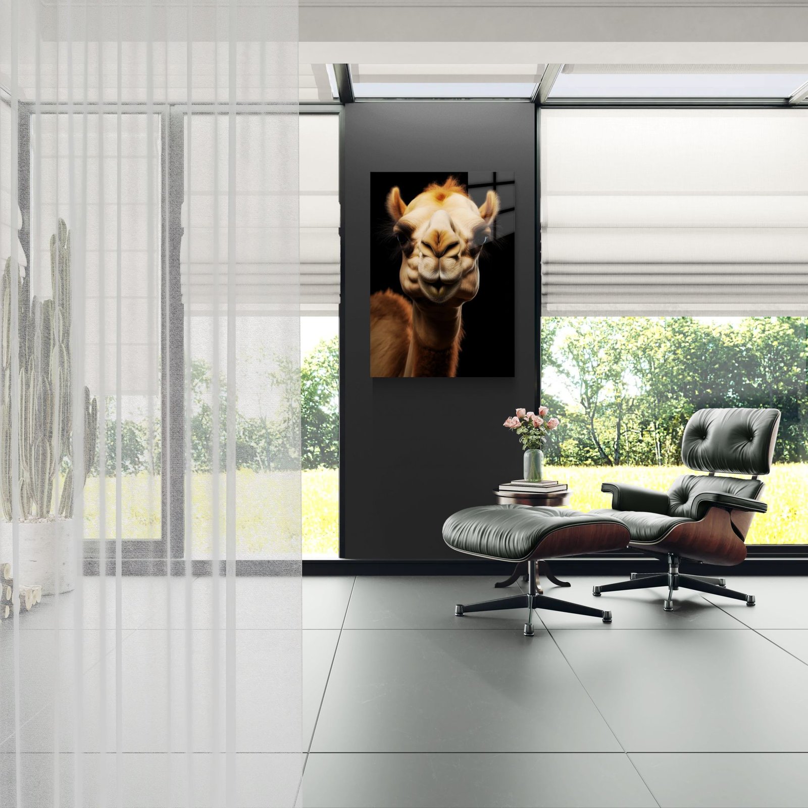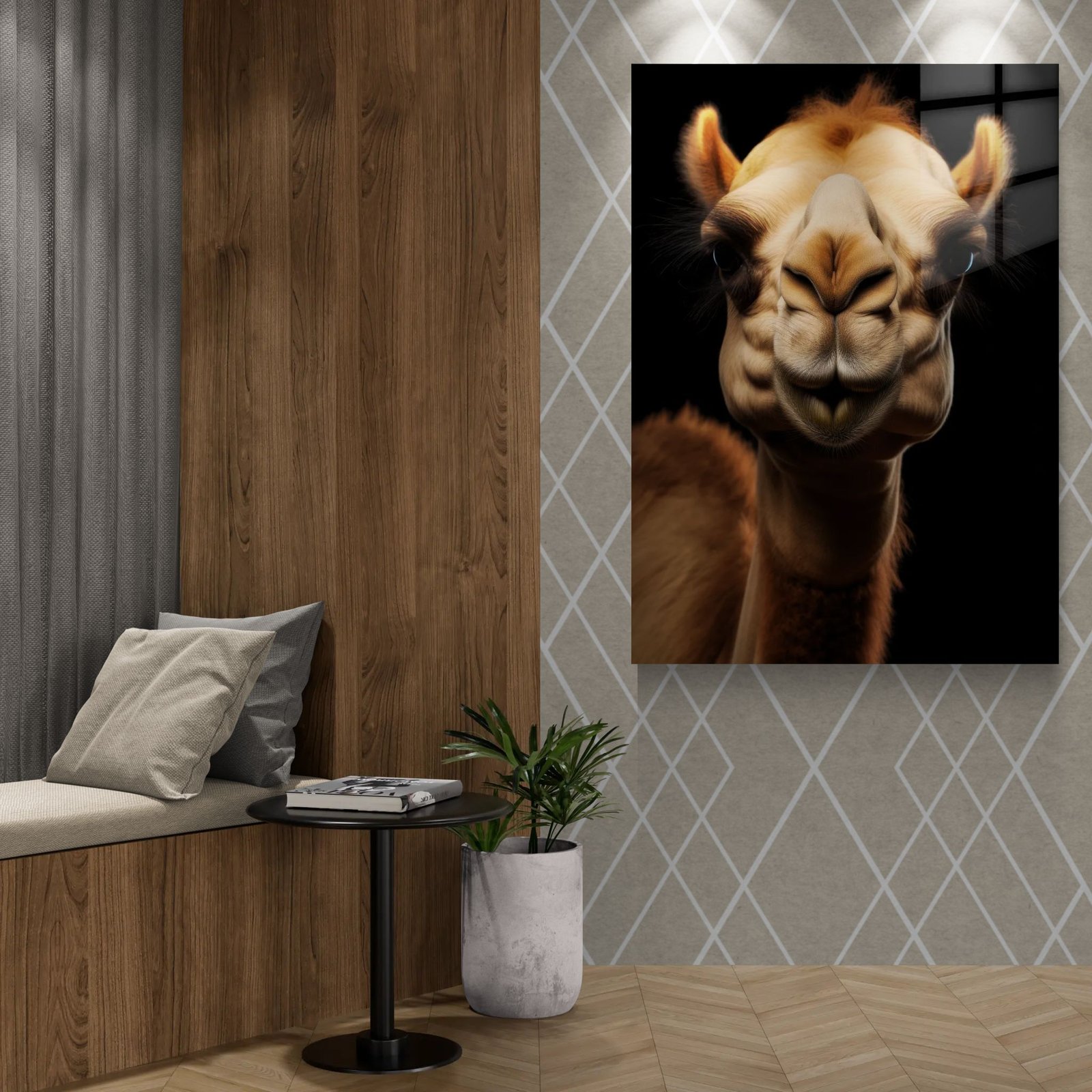„Camel Noir – Calm Endurance“ – ramybės, ištvermės ir prisitaikymo simbolis. Kupranugario portretas juodame fone perteikia tylią jėgą, kantrybę ir gebėjimą išlikti ekstremaliomis sąlygomis. Tai ne egzotika – tai charakteris.