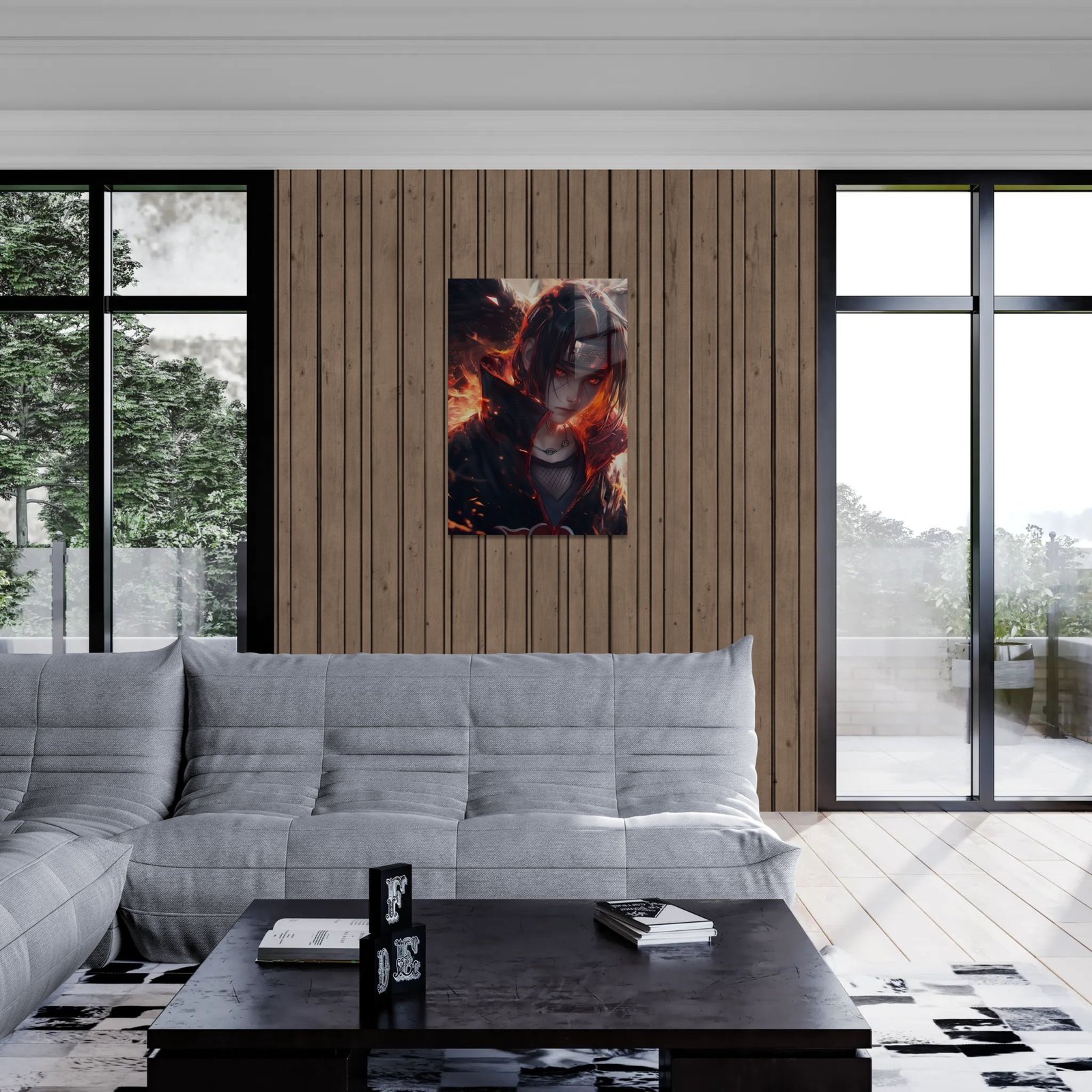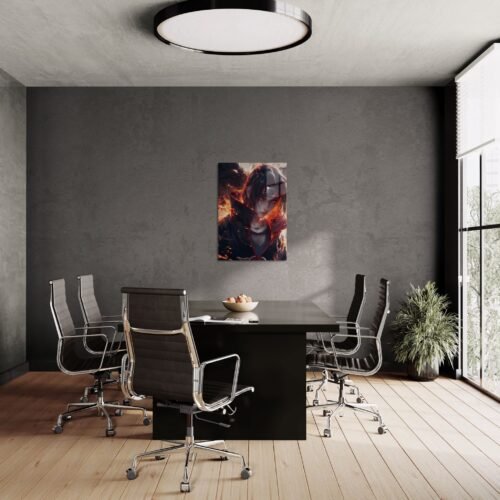 Itachi Uchiha – Eternal Flame – ramus žvilgsnis, deganti vidinė jėga. Šis paveikslas užfiksuoja vieną labiausiai gerbiamų anime herojų tarp šviesos ir tamsos. Ant metalo jo akys atrodo kaip gyvos – raudonas „Sharingan“ žaižaruoja, o liepsnų švytėjimas keičiasi priklausomai nuo kampo. Tai daugiau nei dekoracija – tai simbolis lojalumo, skausmo ir stiprybės.