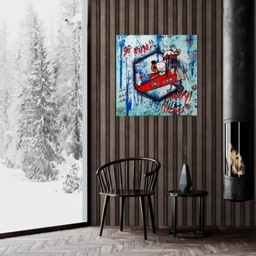 Snoopy Fun Flight – pop art paveikslas ant metalo