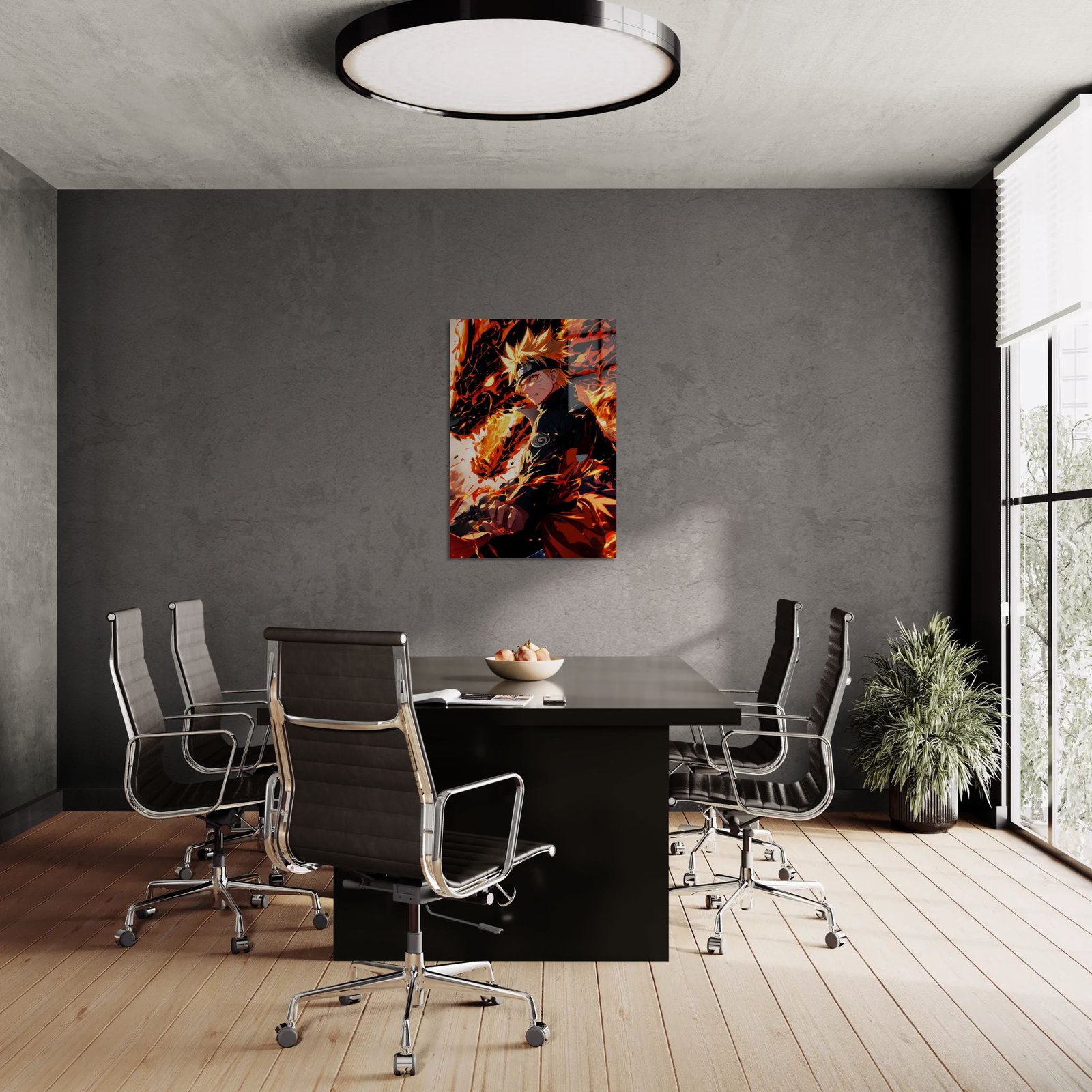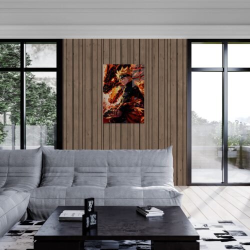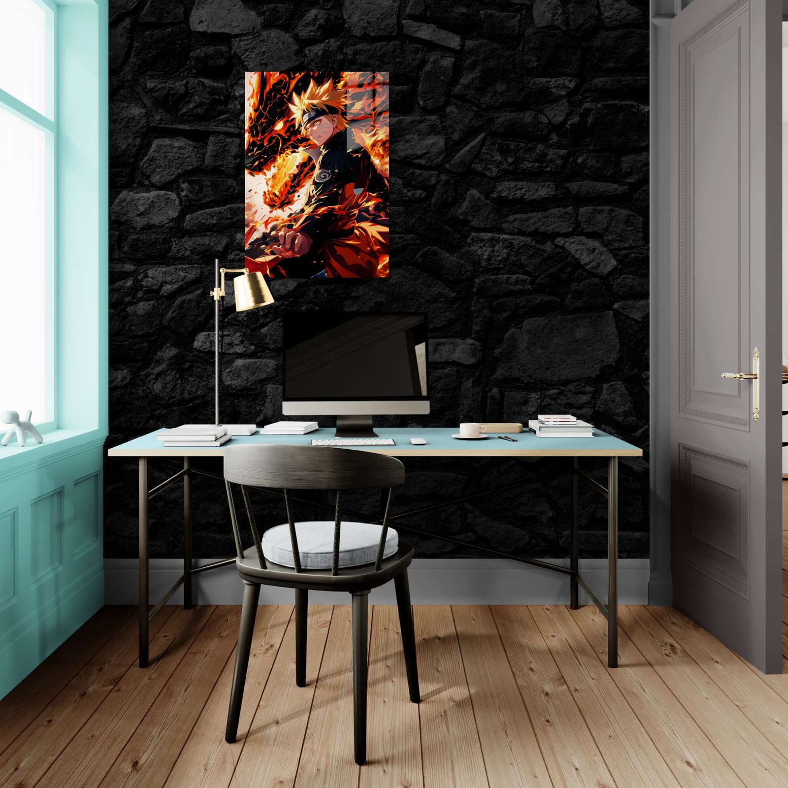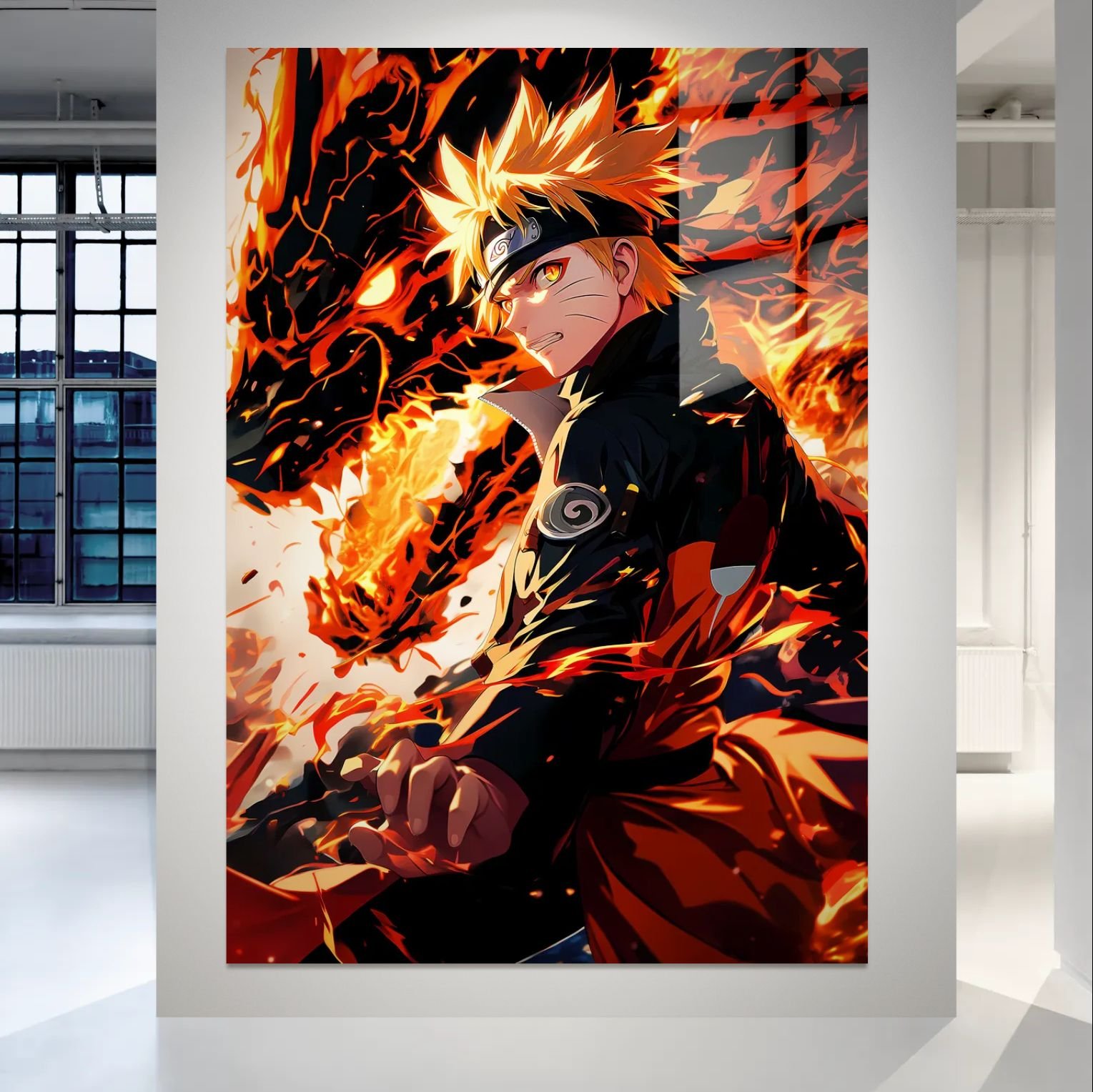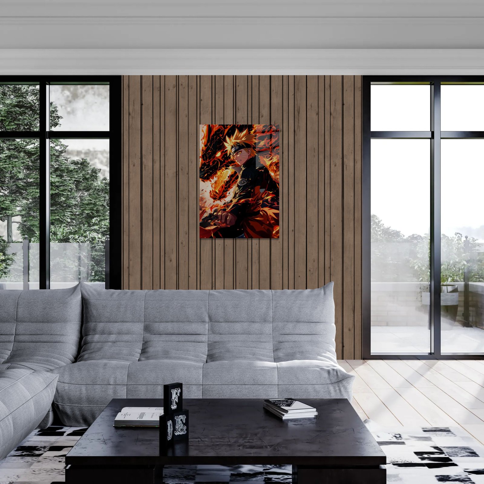 „Naruto Fire Spirit“ – intensyvus anime paveikslas ant aliuminio, vaizduojantis Naruto ir ugnies energiją kartu su devyniais uodegomis (Kurama).