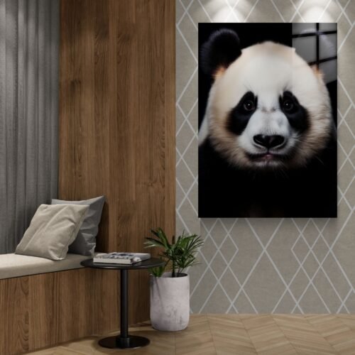 „Panda“ – išraiškingas pandos portretas ant aliuminio, perteikiantis ramybę, balansą ir natūralų žavesį. Tiesus žvilgsnis ir kontrastinga juodai balta spalvų paletė sukuria švarų, estetišką ir modernų vaizdą.