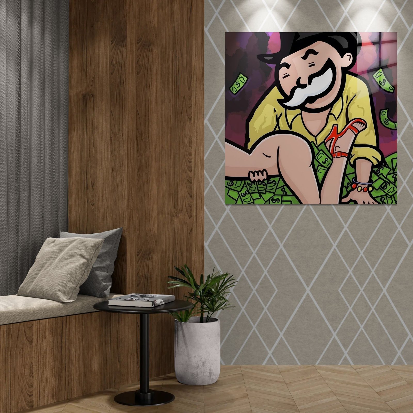 „Rich Desire“ – išraiškingas pop art paveikslas ant aliuminio, jungiantis aistrą, prabangą ir pinigų energiją.