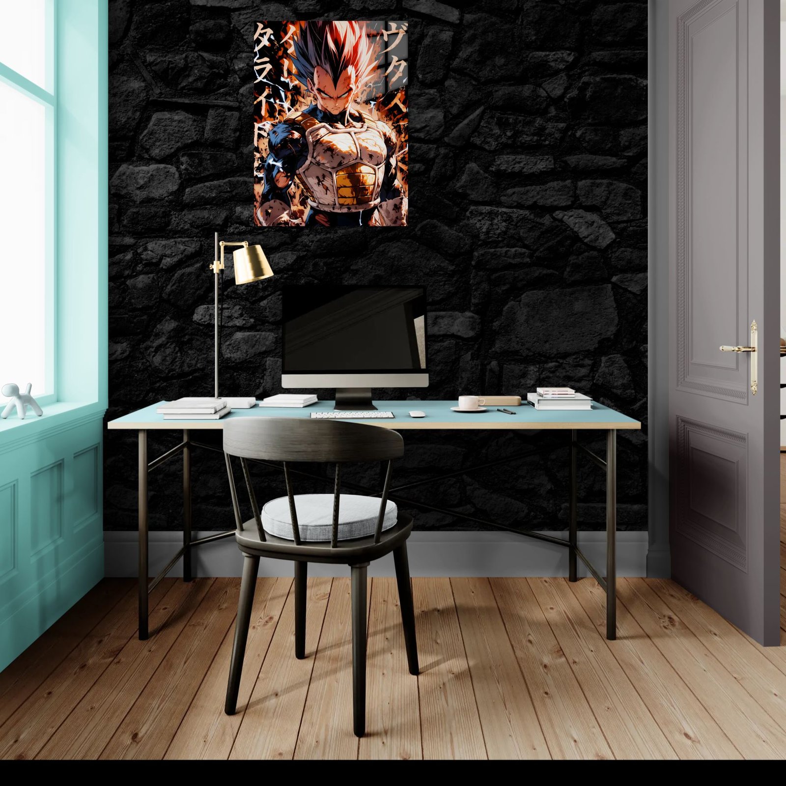 „Vegeta Power Mode“ – intensyvus anime paveikslas ant aliuminio, perteikiantis jėgą, įtampą ir kovos dvasią.
